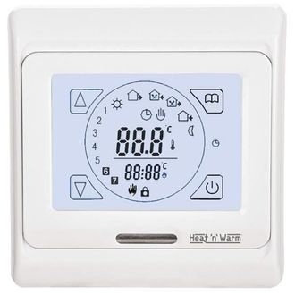 Grand Meyer HW700, программируемый терморегулятор c сенсорным дислпеем для управления отоплением электрического типа. Возможность программируемого а так же ручного управления. Возможность установки недельного периода 5+2/6+1/7 дней. Максимальная нагрузка 3600 W. Установка в стандартную монтажную коробку. Память настроек при отключении питания. Огнезащитный пластик. NTC датчик.