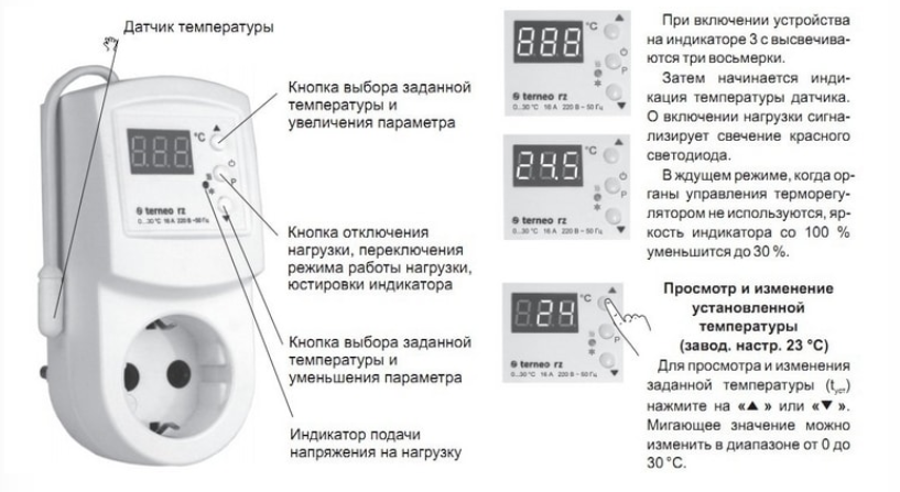 Terneo rz - терморегулятор в розетку для инфракрасных панельных обогревателей и электроконвекторов.